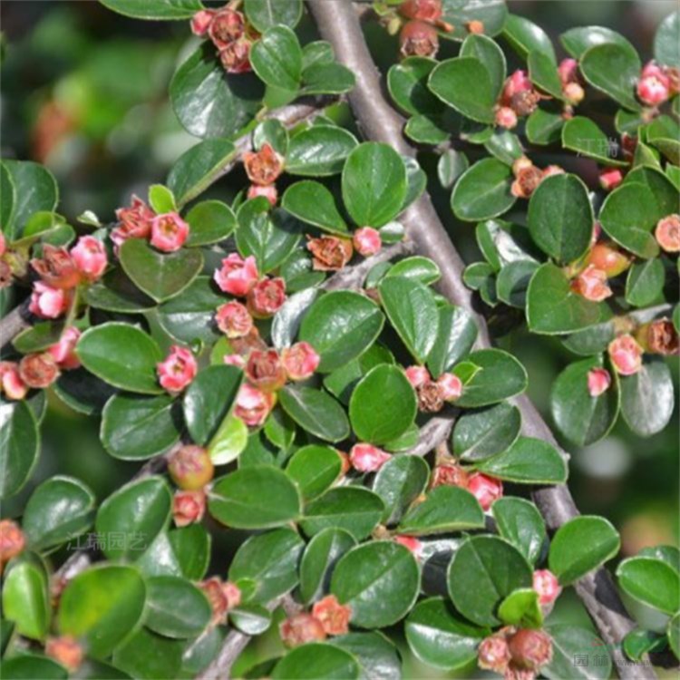 粉花,红果,绿叶,50-60厘米左右高的,平枝栒子,绿化效果好。50-60高平枝栒子,就是在我们苗圃条件下,也要培养3-4年的时间,要是在前些年,至少也要2块多钱,现在呢,真的便宜多了,预计,不超过1块钱!你说,便宜不便宜!而且,这种50-60高的平枝栒子,根深蒂固,根系发达(如图1所示),枝繁叶茂,花红叶绿,粉花红果,还有绿叶相衬,如2图所示,你说美不美?绿化效果,好不好?平枝栒子,是一种半落叶或半常绿的,半匍匐状的花灌木,枝条常水平或斜向开张,成整齐的二列状排列,如图3所示,叶圆形或心形,5-6月间,开粉色花,9-10月间,结球形果,前期绿色,成熟后,则是鲜红色,观赏性很好,特别是冰天雪地,大红色的果子,尤其耀眼,如不及时采摘,迟早都是老鼠、鸟儿们的美食!欢迎选购,株高是50-60厘米的多年生平枝栒子,还有30-40厘米的平枝荀子,龟甲冬青,万年青,大叶黄杨,小叶黄杨,金边黄杨,豆瓣黄杨,北海道黄杨,瓜子黄杨,金叶女贞,朝鲜黄杨,金森女贞,高山黄杨,金叶水腊,小叶女贞,水蜡,冬青,卫矛等,色块苗,绿篱苗,量大优惠,票据免费,代办托运,服务到位,谢谢。